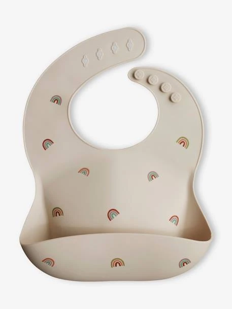 Bavoir Avec Récupérateur MUSHIE En Silicone Beige/arc En Ciel – Mushie