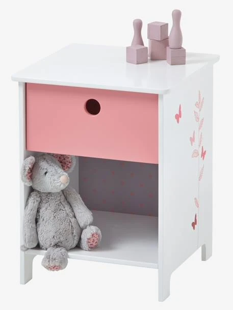 Agrémentée de très jolis motifs papillons, cette table de chevet est idéale pour accueillir lampe, livres ou autres petits objets.