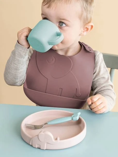 Lot de 2 bavoirs avec récupérateur DONE BY DEER Peekaboo Elphee en silicone