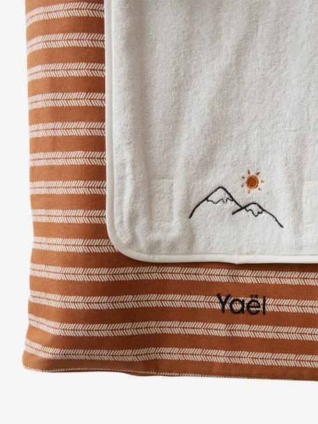 Matelas à langer personnalisable Petit Nomade : matelas en PVC garnissage polyester, housse en coton bâchette et éponge doublée PVC.