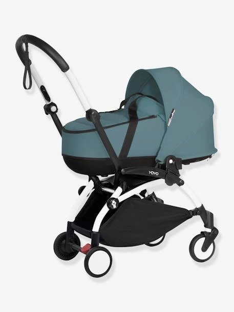 Attention ! Les adaptateurs de la nacelle évoluent. Dorénavant, ils se fixent sur l’avant des accoudoirs. Trois avantages d’avoir la nacelle en avant : 1 – laisser les adaptateurs siège-auto en place quand la nacelle est installée, pour changer de version en un clin d’oeil, 2 – optimiser l’utilisation du YOYO bag, en retrouvant sa capacité totale, comme en version 6+, 3 – profiter de plus d’espace pour l’aîné installé sur YOYO board