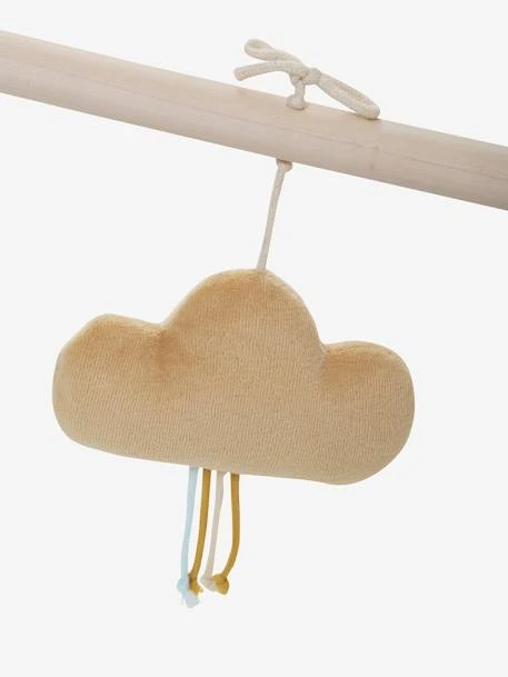 - 3 jouets suspendus : nuage avec papier crissant, étoile avec billes à l’intérieur et arc-en-ciel