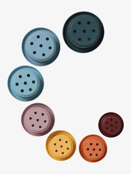 7 gobelets en silicone à empiler pour former une pyramide ! Tendance et idéal pour les enfants, le silicone est doux, se mâchouille sans problème et peut aussi être utilisé dans le bain. Chaque gobelet dispose de trous de formes différentes dans le fond pour jouer avec l’eau et offrir aux enfants de bons moments d’amusement !