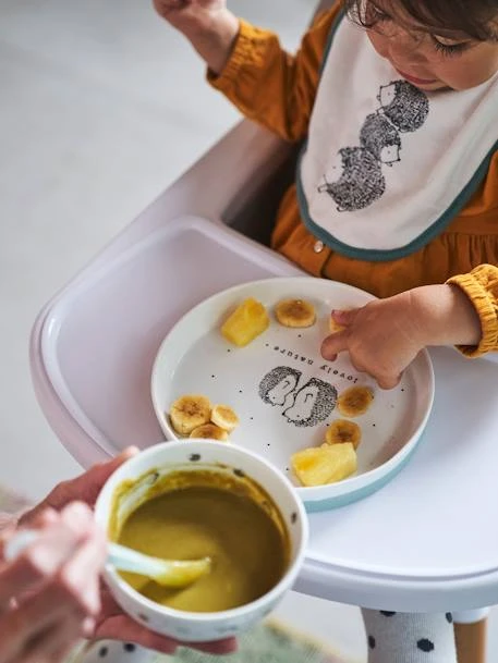 Un adorable kit composé d’un bol et d’une assiette, dans lequel votre enfant pourra déguster vos bons petits plats ! La vaisselle est munie d’un socle en silicone pour ne pas glisser sur la table.